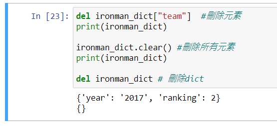 字典刪除元素、清空、刪除字典